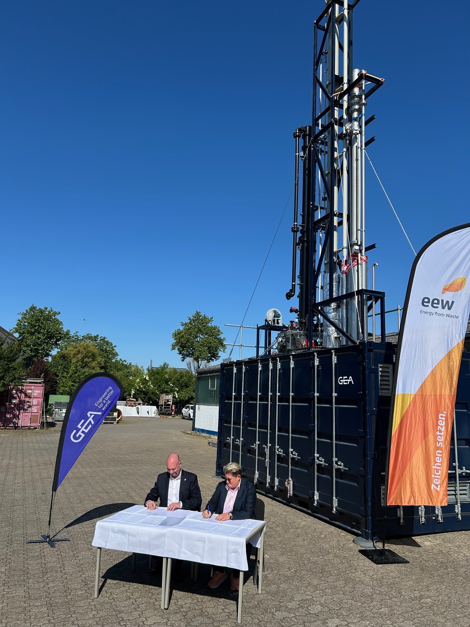 Im ersten Schritt hat EEW eine mobile Testanlage von GEA erworben. Die Anlage wird ab Sommer 2025 an verschiedenen EEW-Standorten zum Einsatz kommen, zunächst im niederländischen Delfzijl. Die Anlage liefert praxisrelevante Erkenntnisse über Effizienz, Skalierbarkeit und Integration der CO₂-Abscheidung in bestehende thermische Abfallverwertungsprozesse.