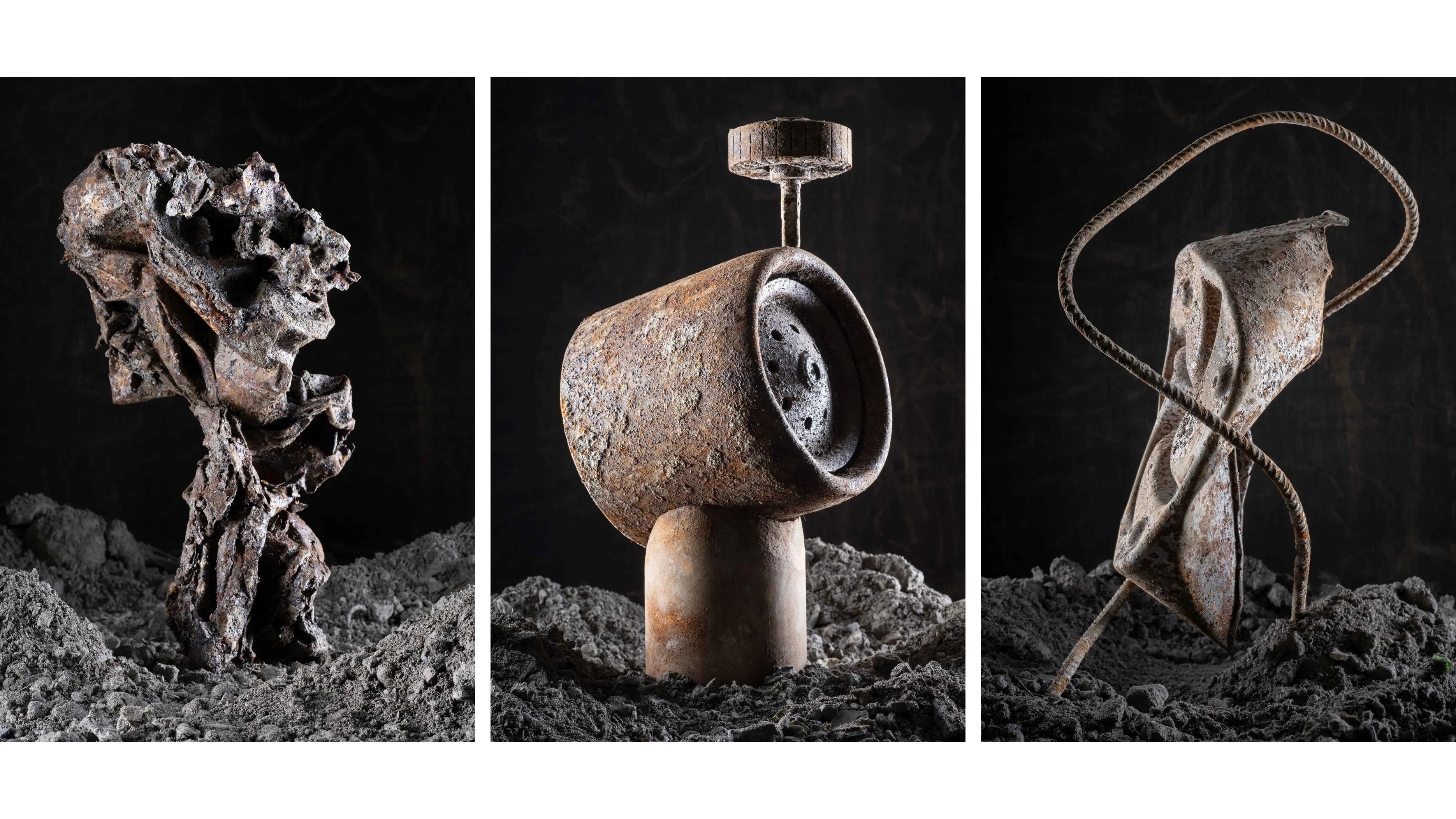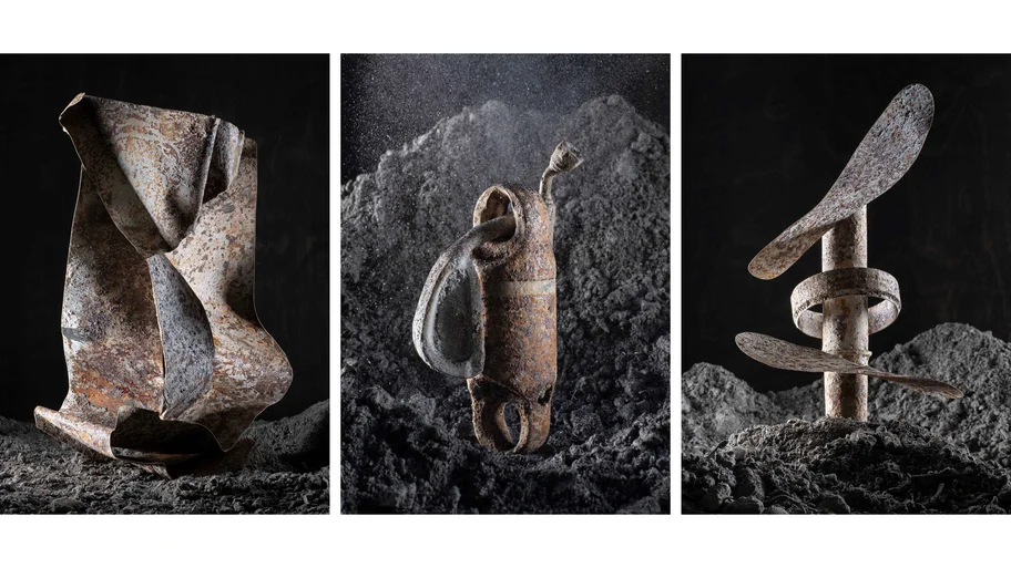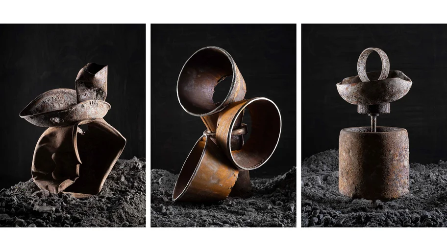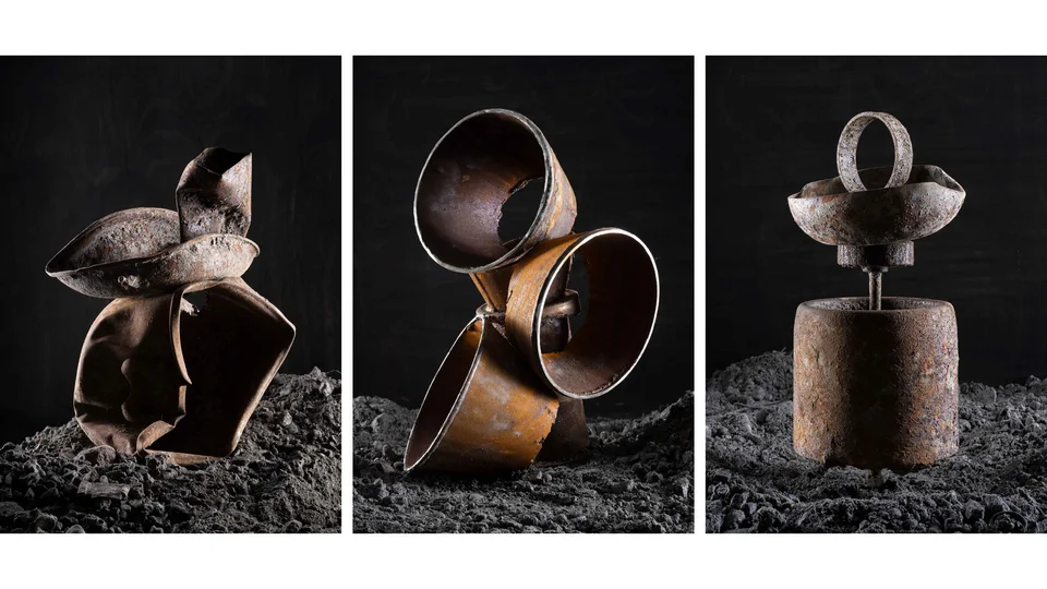 Diese Überreste des Alltags betrachtete er wie modernes Strandgut – als greifbare Spuren menschlicher Nutzung. Im Studio arrangierte er sie neu zu temporären Skulpturen, die er fotografisch festhielt. Seine Arbeiten erzählen von Wandel, Erinnerung und Wertschätzung des scheinbar Wertlosen – und eröffnen einen ungewöhnlichen Blick auf das, was nach der Verbrennung bleibt.
